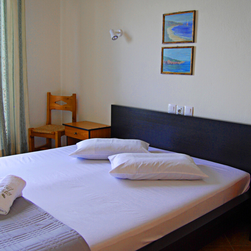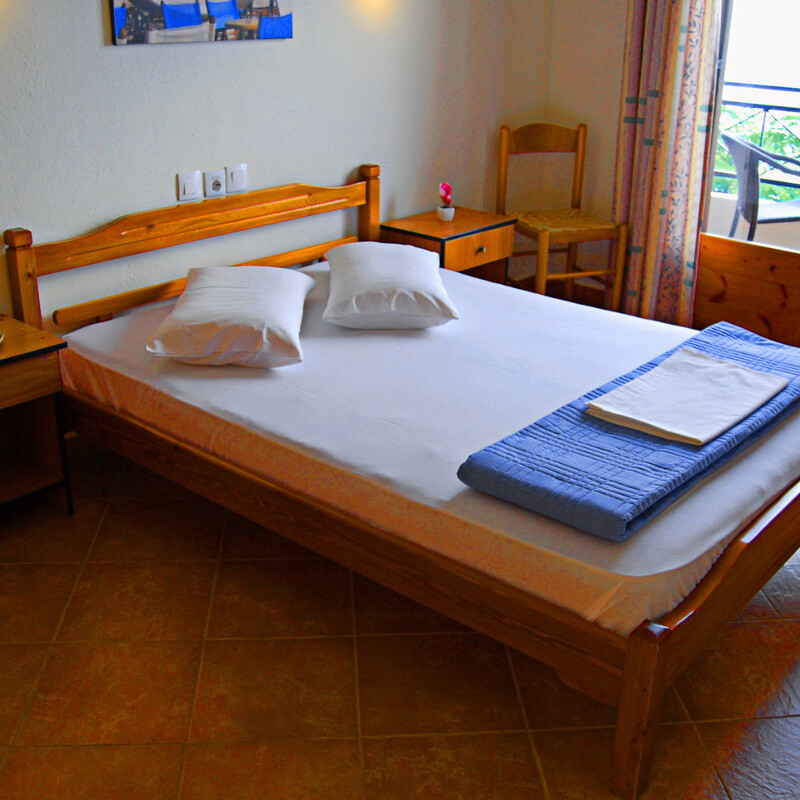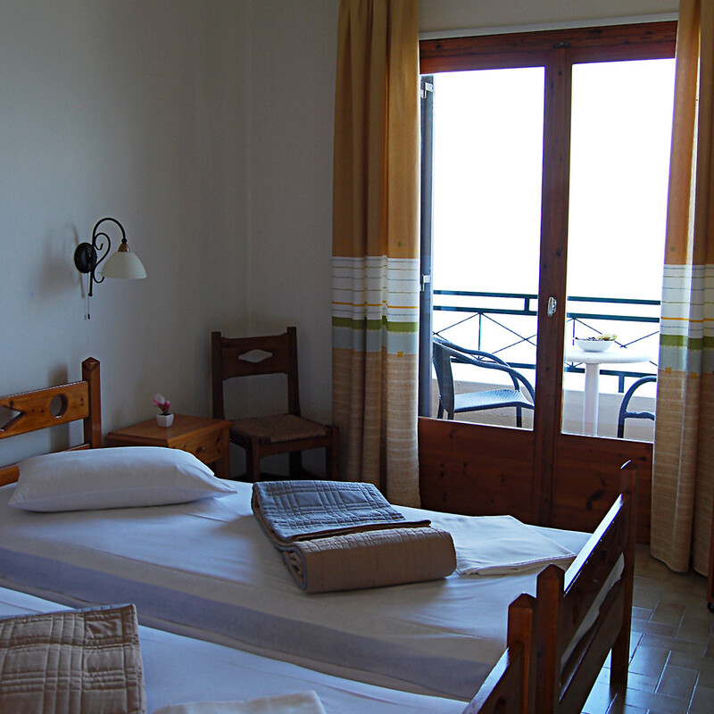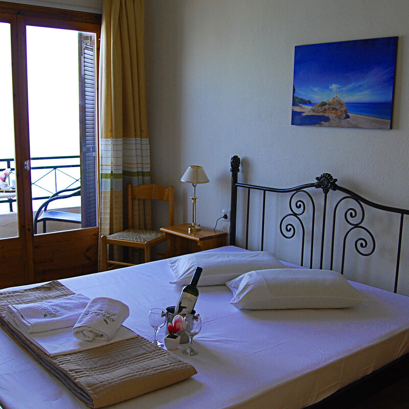 Το κατάλυμα μας περιλαμβάνει δίκλινα δωμάτια και δύο οικογενειακά διαμερίσματα. Όλα διαθέτουν μπαλκόνι με θέα προς την θάλασσα.